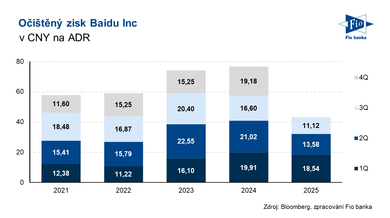 - Čínská společnost Baidu zaznamenala ve 3Q meziroční pokles výnosů o 7 %