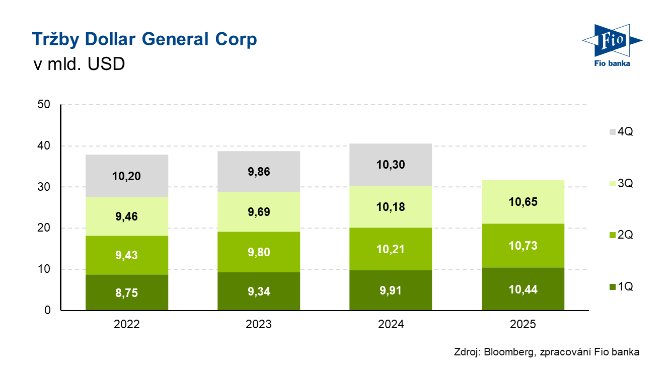Americký řetězec diskontních maloobchodů Dollar General reportoval své výsledky za třetí kvartál fiskálního roku 2025, který skončil 31. října 2025. Překonal očekávání tržeb, čistého zisku i zisku na akcii. Společnost také zvyšuje svůj celoroční finanční výhled.