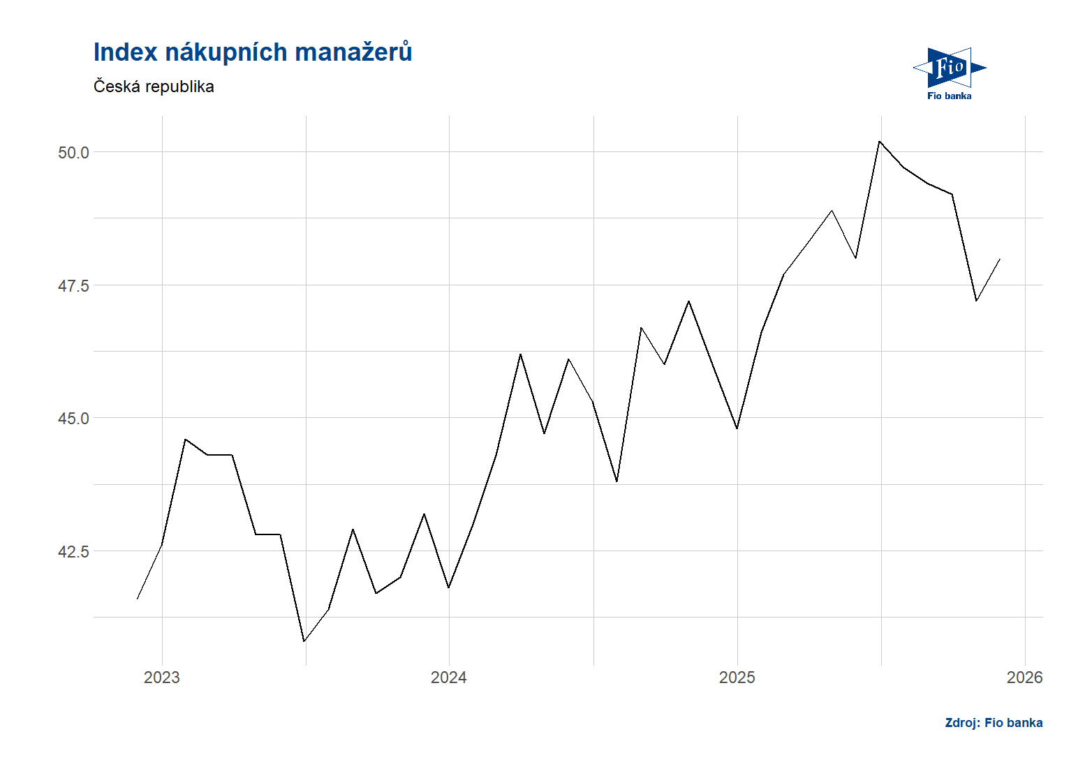 ČR: PMI ve výrobě dosáhl v listopadu 48 b. při očekávání 47,5 b.